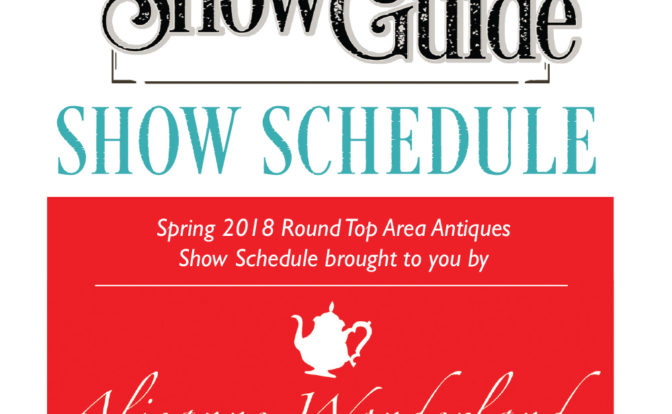 The Round Top Antiques Show Schedule Spring 2018 is set for mid-March through April 8. The twice-yearly event attracts an estimated 100,000 vendors and...
