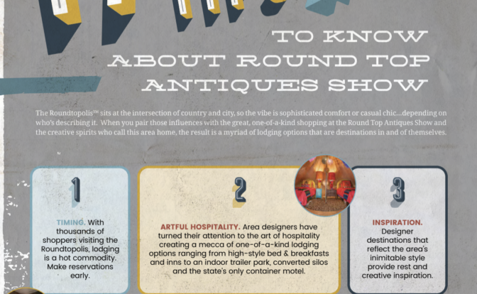 When you think about Lodging Tips for the Round Top Antiques Show, let's set the scene: the Roundtopolis™ sits at the intersection of country...