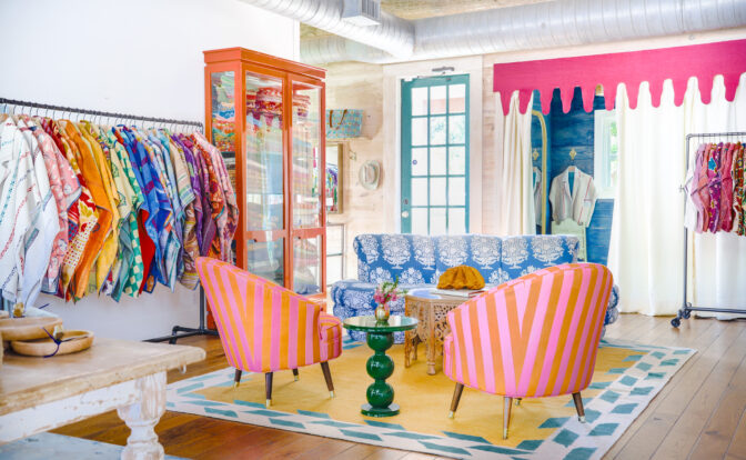 The Round Top textile haven has undergone a redesign of its Henkel Square location, blending the historic interior with joyful splashes of color and imported fabrics to create a dream-come-true space for owner Jolie Helms.