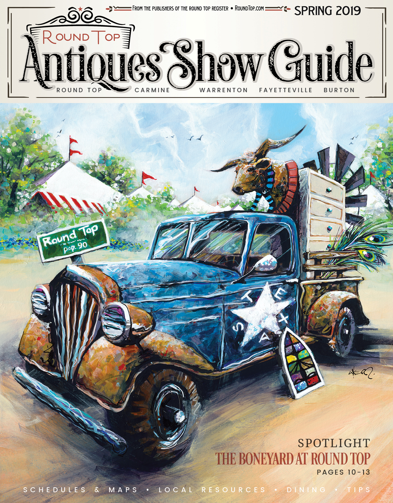 First and foremost, we are publishers. We publish the Round Top Magazine and the Round Top Antiques Show Guide. Both magazines are published twice per year and are available on newsstands across the greater Roundtopolis™.