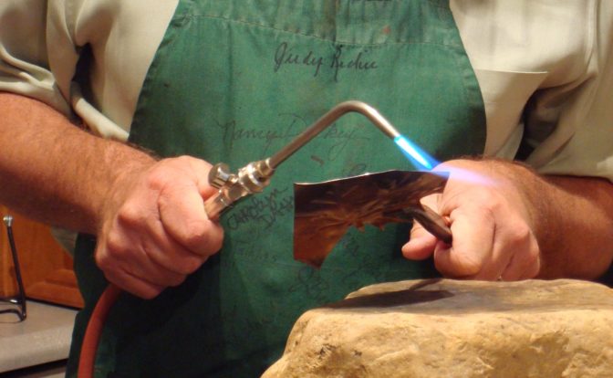 A chunk of mesquite that refused to burn ignited Gerald Tobola’s creative fire. It became his first lamp base, setting his hands to making...